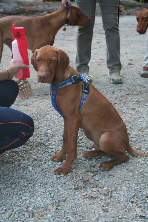 a mladučký Ariel - vtedy päťmesačný. Ariel bol také roztomilé šidlo, ktorý sa síce sprvu bál, no po určitom čase sa medzi vyžlami-dospelákmi oťukal a behal s nimi ostošesť :). Nikdy však nezabudol prísť ku svojej paničke sa pritúliť a porozprávať čo posledné dve minúty robil. Asi ako každá ryšavá päťmesačná kôpka. Tešíme sa až ho uvidíme nabudúce ako vyrástol :).